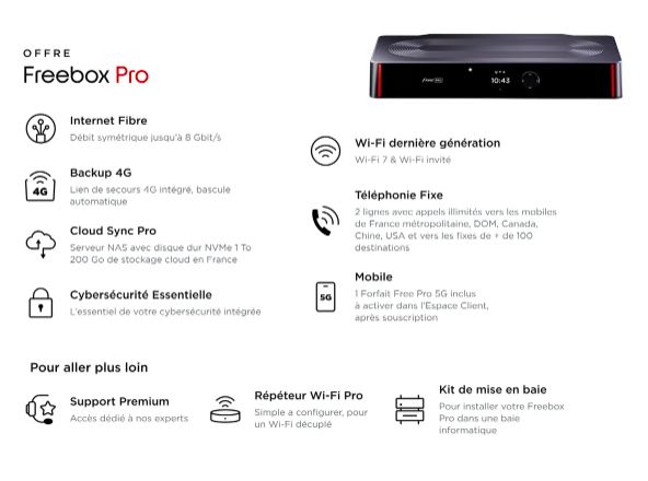 20 ans après le grand public, Free s'est lancé sur le marché des entreprises avec Free Pro. L'ambition de Free Pro est de rendre accessibles les solutions les plus performantes à toutes les entreprises avec :